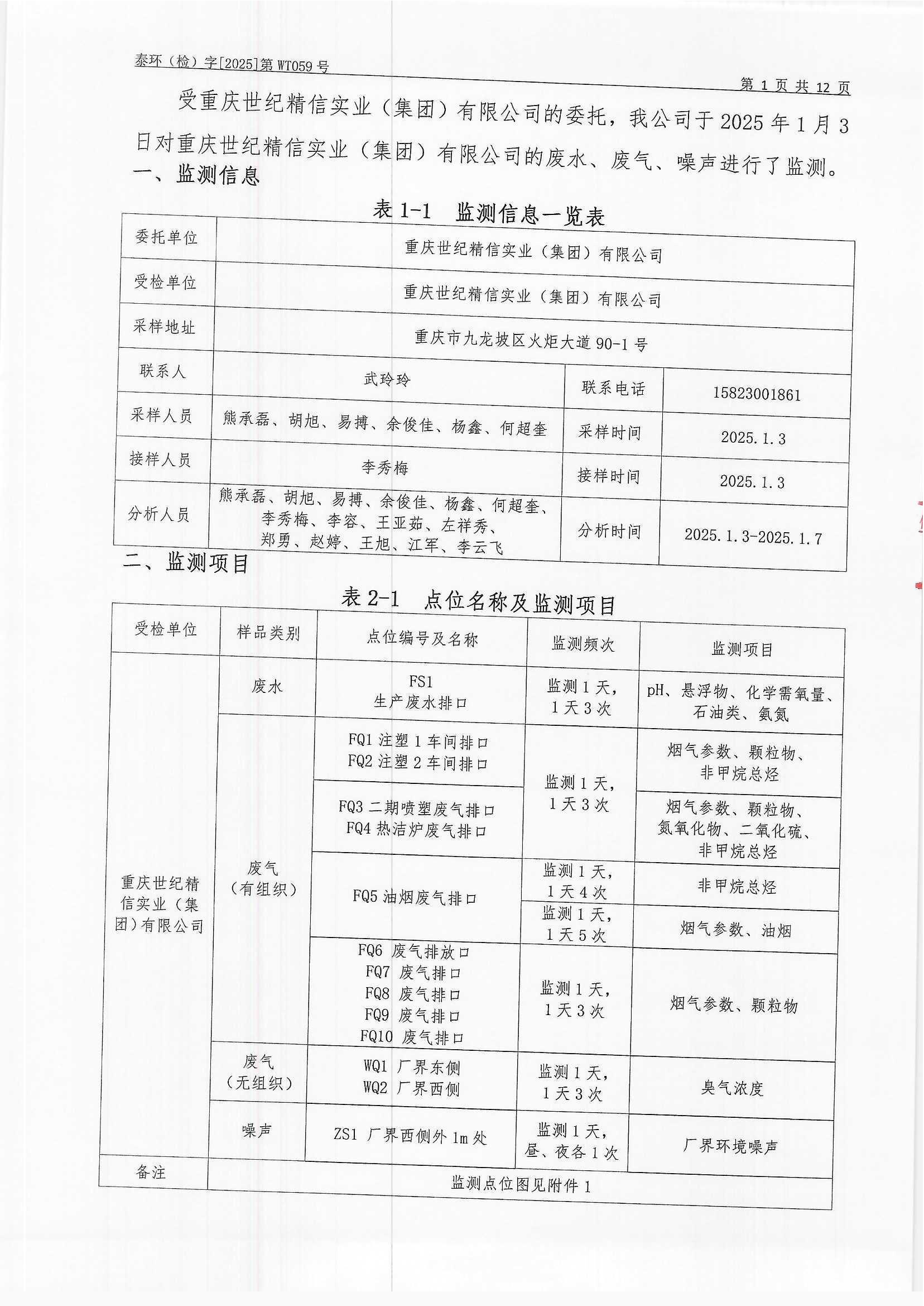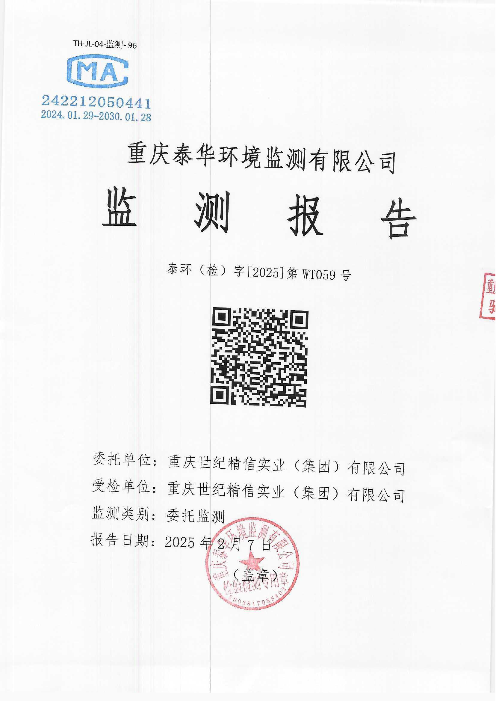 重慶世紀精信實業(集團)有限公司(2019年)監測報告