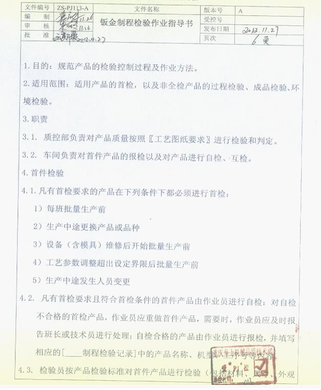 鈑金車間檢驗作業指導書